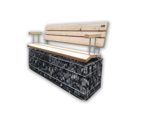 La panchina dirittaMolina è composta da un gabbione metallico con sopra una seduta ergonomica in legno di larice, disponibile in tre tipologie: cm 50x50×40 cm 100×50×40 cm 200x50x40