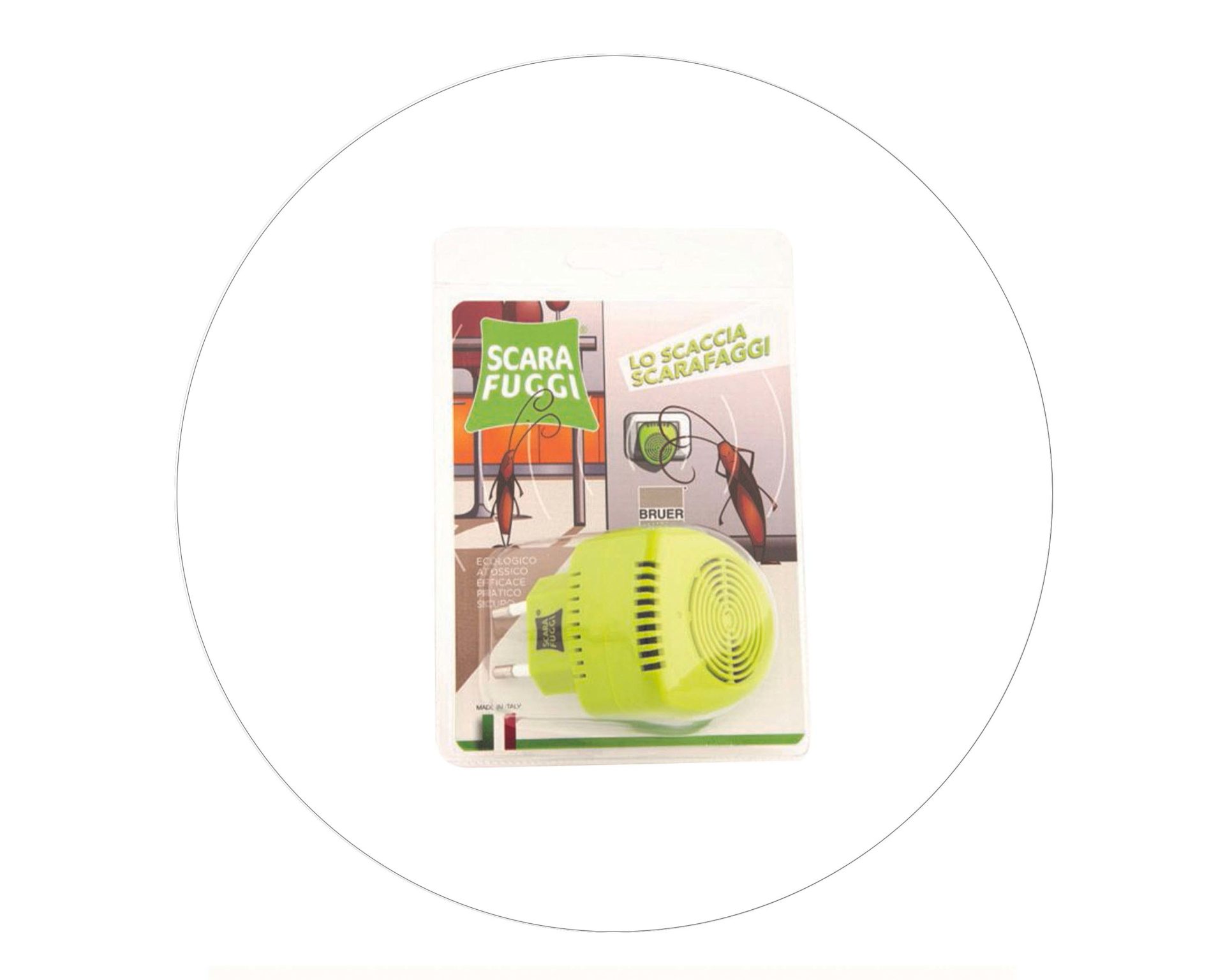 Scarafuggi è un dispositivo elettronico a emissione di ultrasuoni in grado di allontanare gli scarafaggi (blattoidei) dall’ambiente in cui è installato ed evitarne il ritorno. Completamente atossico e inodore, rappresenta la soluzione ideale per ambienti quali cucine, sale da pranzo, inoltre gli ultrasuoni emessi, a frequenza variabile, sono innocui per persone ed animali domestici.